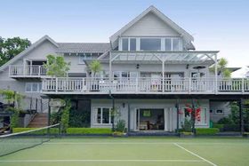 The TV lounge/rumpus room which can double up as a fifth bedroom and a third bathroom opens to the tennis court.