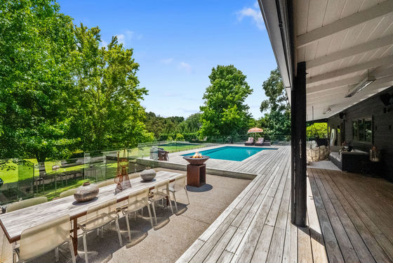 Step outside to discover an expansive outdoor living area that's fully enclosed for winter, featuring two Infratech outdoor heaters and extensive lighting, perfect for entertaining year-round. The covered decks offer ample space for sun loungers, outdoor dining, and an Ofyr fire pit, creating a delightful space for family gatherings. The solar heated swimming pool and spa ensure you can enjoy outdoor leisure to the fullest.