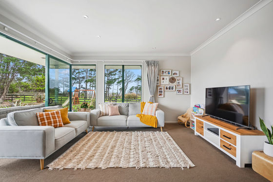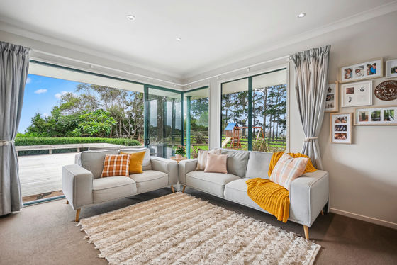 From the comfort of your lounge, you can look out across your own paddocks, creating a real sense of space and calm that's hard to find. Large oversized windows draw in natural light throughout the home and frame the outlook, while expansive wraparound decking extends your living areas outdoors, making it easy to relax, entertain, and enjoy the setting year-round.