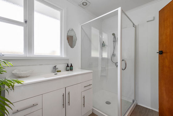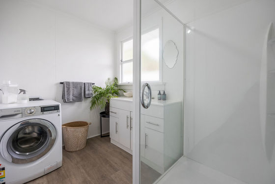 Having a sheltered covered way over the back entry is so convenient for drying off the dog after a swim or kicking off your jandals when you return from the beach, and there's storage cupboards here too.