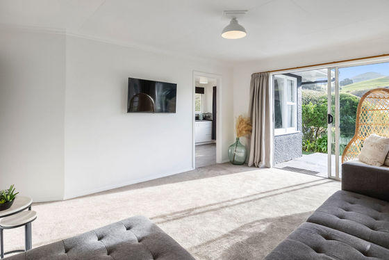 This 2 bedroom property is well positioned for sun, has an easy care section and excellent off street parking with ample room for a caravan or two. Recently redecorated, the home has been well maintained and is tastefully presented, fresh, light and bright, with new flooring including carpet, along with new window coverings. Sun absolutely fills the open plan kitchen-dining-living space, but for the cloudy days and winter months there's a heat pump in the living room. The kitchen has a destructor burner with wet back - so handy to have.