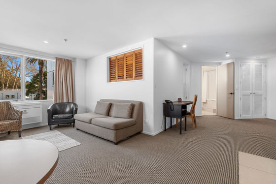 Inside, the light filled open-plan living and dining area flows effortlessly to the kitchen which boasts sleek cabinetry and stainless steel appliances, ready for everyday meals or entertaining. Both bedrooms are generously sized with ample wardrobe space, and the full bathroom features quality fixtures and a bathtub. An in-apartment laundry, secure car park, and access to resort style facilities - including a gym and sauna - add to the convenience.