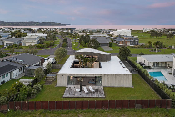 Where country also meets the beach, rural views, cows in the nearby paddocks and a mixed backdrop of both native bush and golf course reserve, it makes a statement of solid, sculptural form which is finely attuned to the landscape.