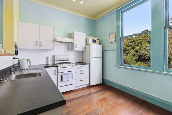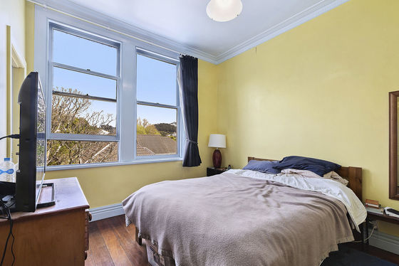 Another light-filled one-bedroom flat upstairs, offering a bathroom, separate toilet, and open-plan kitchen and living. Also returning $480 per week.