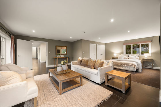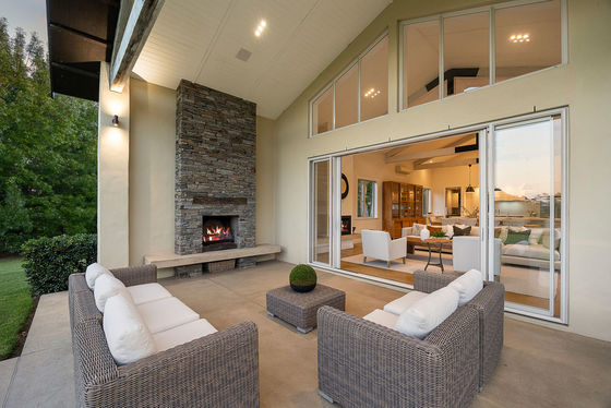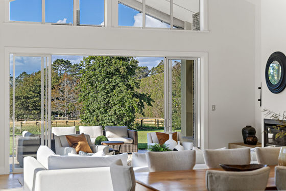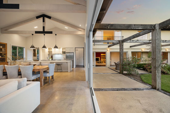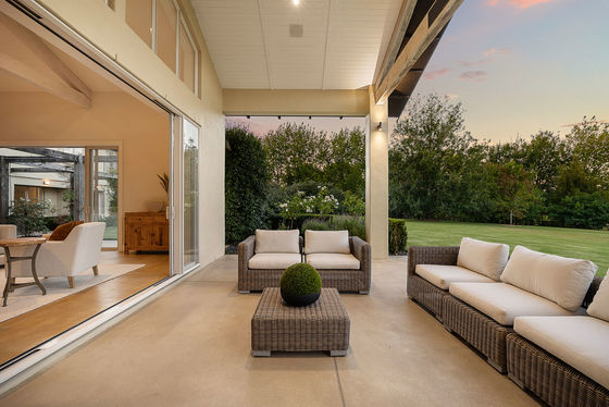 Remodelled and extended by the acclaimed House of Nautica in 2009, the solid masonry home blends rustic charm with modern refinement. A chef's kitchen with Falcon range and butler's pantry anchors the open-plan living, featuring exposed beams, polished concrete floors, and seamless flow to outdoor entertaining areas. A spa patio, open fireplaces, and built-in speakers complete the picture of relaxed luxury.
