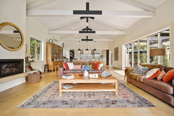 Remodelled and extended by the acclaimed House of Nautica in 2009, the solid masonry home blends rustic charm with modern refinement. A chef's kitchen with Falcon range and butler's pantry anchors the open-plan living, featuring exposed beams, polished concrete floors, and seamless flow to outdoor entertaining areas. A spa patio, open fireplaces, and built-in speakers complete the picture of relaxed luxury.