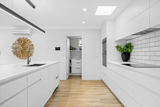 The interiors are clean and contemporary, featuring an open-plan kitchen with a walk-in pantry, dining area and lounge that leads a lineup of three living rooms, while a study nook brings the work-life balance into focus.