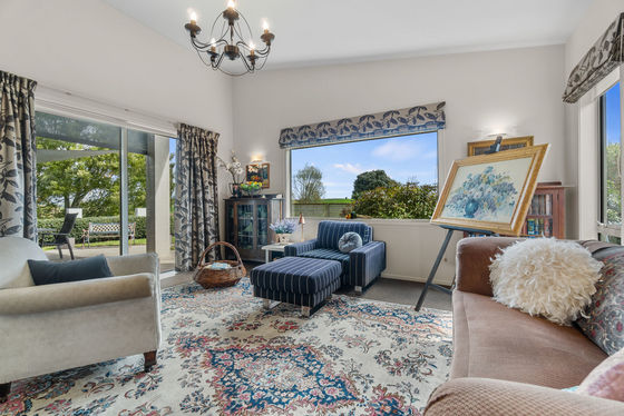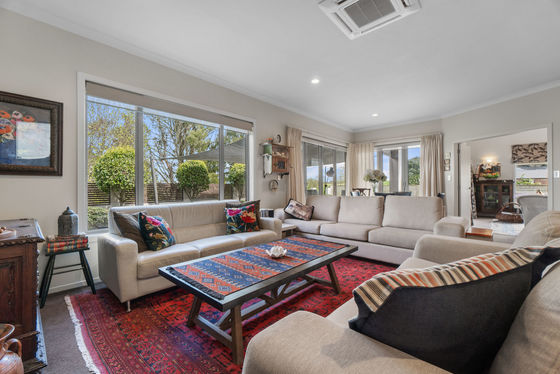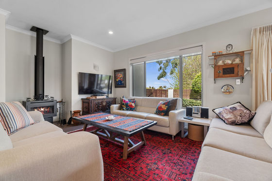 The open plan kitchen, dining, and living area flows seamlessly to a second lounge, creating versatile spaces for entertaining or relaxing. Year round comfort is assured with double glazing, a cosy wood fire, and a convenient heat pump.