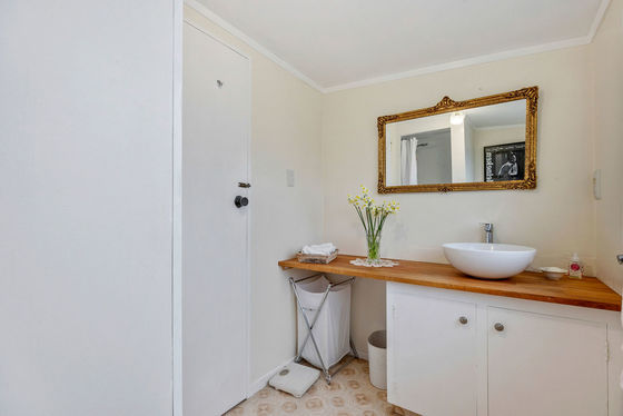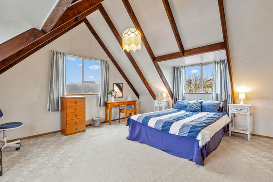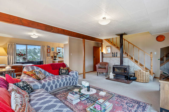 Upstairs, the open-plan living and dining area flows seamlessly onto a super sunny wraparound deck - ideal for entertaining or soaking in the sweeping urban and rural views. The home features two enormous bedrooms, a third double-sized bedroom, and two well-appointed bathrooms, offering ample space for family living or accommodating guests. The elevated position fills the home with natural light throughout the day, creating a warm and inviting atmosphere.