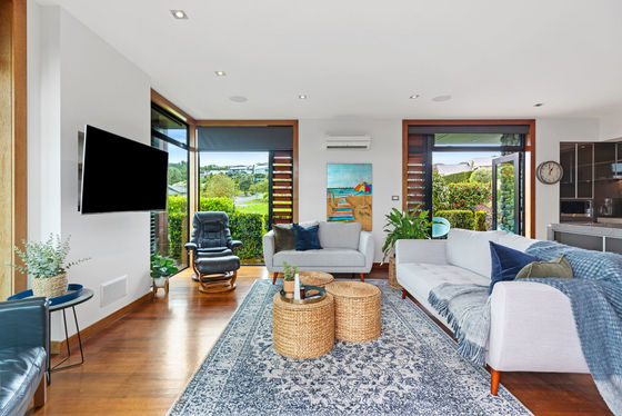 The established gardens envelop the property in privacy and blend effortlessly with the home's superb indoor-outdoor flow. A stylish, well-appointed kitchen with quality appliances, couple with a second living area, and a breakfast bar anchors the living space - perfect for relaxed mornings with family.