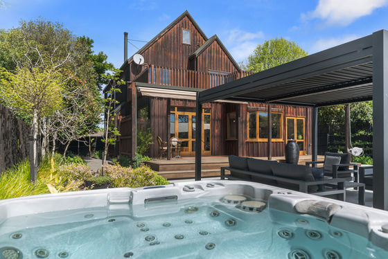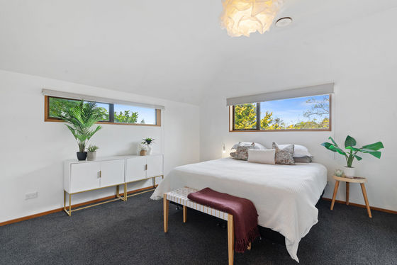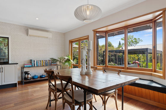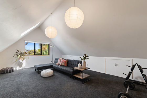 Four bedrooms, two up and two down, are serviced by three bathrooms, with living spaces commensurate with a growing family. Constructed in the era of extravagant sized rooms, two huge living spaces are interconnecting but can be separated with sliding doors. An enormous rumpus room over the garage will have a myriad of uses for families. A Chef's kitchen is sleek in black and white with a lustrous stone benchtop, and wide, solid timber planks underfoot. The master suite is palatial, opening through two sets of French doors onto a sundrenched deck overlooking the garden below. Heat pumps are ducted upstairs for heating and cooling in Summer, and there is a log burner and heat pump in the living areas.