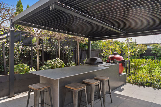 The current owners have created superb outdoor living on this 809sqm, North facing site. French doors open onto a decked patio shaded with an electric awning and a tiled terrace has two pergolas with louvres covering a barbeque area and al fresco dining opposite. A built in BBQ as well as a Kamado Joe ceramic charcoal grill and bar fridge are included in the sale along with a sizeable Spa pool nestled in the garden. Entering from Glandovey Rd, a generous forecourt behind the electric gate has plenty of room for extra vehicles in front of the double garage. There is secure parking for a trailer or perhaps a boat or caravan.