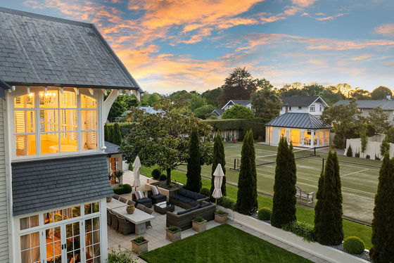 The north-west facing kitchen, dining, and living area beckon with three sets of French doors that open to three of the four distinct outdoor living spaces. Whether enjoying an al fresco dinner by the double-sided gas fireplace or hosting a soirée on the full-sized tennis court, this home exudes quintessential indoor-outdoor flow.