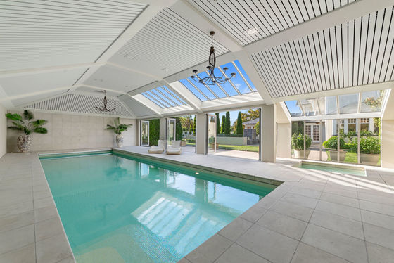 Boasting over 1000m2 of luxuriously appointed accommodation across three separate buildings; a beautifully restored two-storey Heritage home, a guest house with an indoor pool, and a charming Summer house overlooking the tennis court.