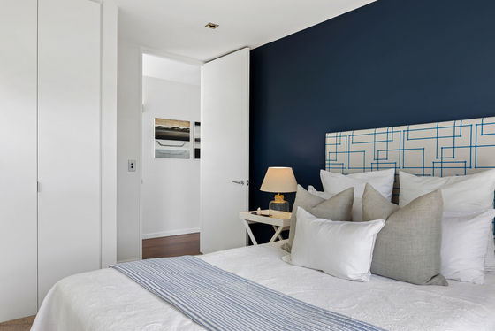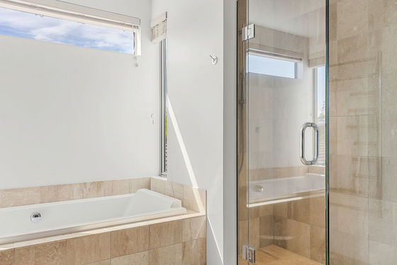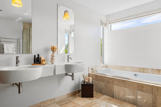 Behind its striking stone wall and timber accents lies a home that's unapologetically stylish. Sunlight pours through floor-to-ceiling glazing, illuminating warm timber floors and crisp white interiors. The designer kitchen is a showstopper with its sleek cabinetry, and seamless flow to the dining and living zones make entertaining a breeze.