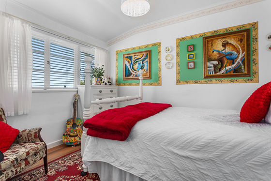 On the next level are two bedrooms, a double and a single - with elevated north facing views. Large ceiling storage is accessed here - a great space for the Christmas decorations when not in use!
