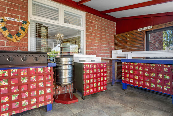 The kitchen features a Belling 90cm oven/stove in bright red - a great statement and I believe cooks everything perfectly! The island bench allows family and friends to congregate to watch the chef at work. Pass the salads...the kitchen and easily accessible to the north facing patios or out to the back garden. The homegrown herbs and vegetables are only a stroll away in a screened garden.