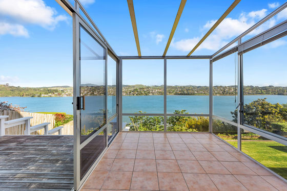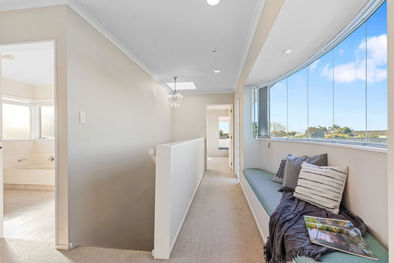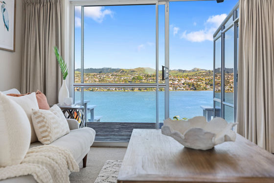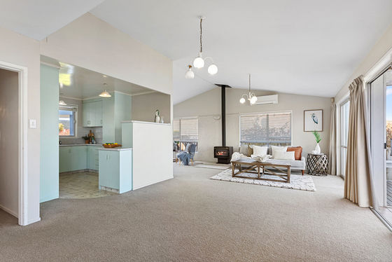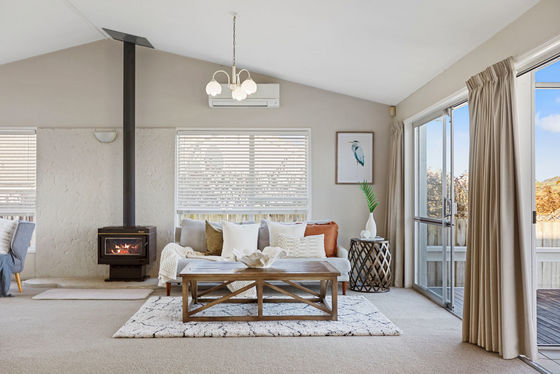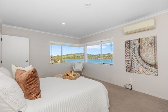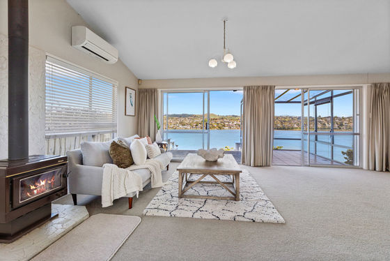 Step inside to a sunlit living area which frames sweeping estuary views, where harbour and distant hills become part of everyday life. The spacious open-plan lounge and dining flows seamlessly to the outdoors, while a cosy fireplace and heat pump ensure year-round comfort. Charming window seats invite moments of quiet reflection or a wonderful spot to enjoy morning coffee while taking in the harbour vistas.