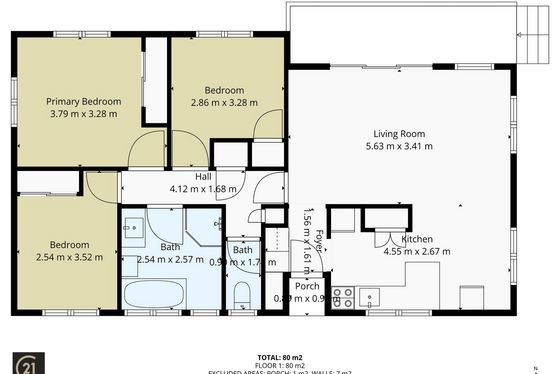 Inside, the open-plan living area is comfortable year-round, with air conditioning ensuring the perfect temperature no matter the season. The tidy kitchen flows effortlessly into the dining and living spaces, creating a natural hub for family meals or entertaining. Each bedroom is generously sized, providing both space and privacy, while the bathroom is well-appointed and functional.