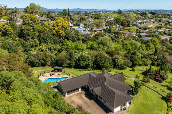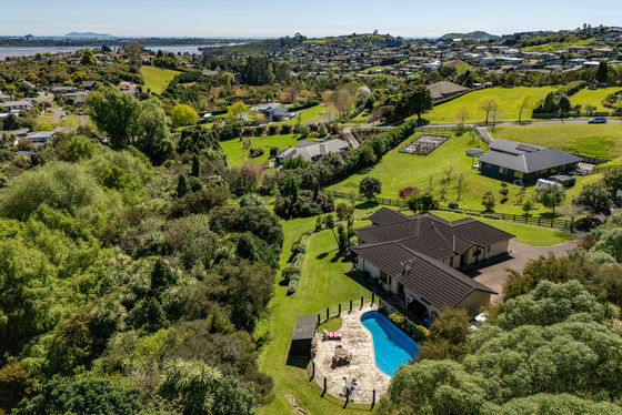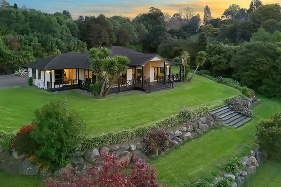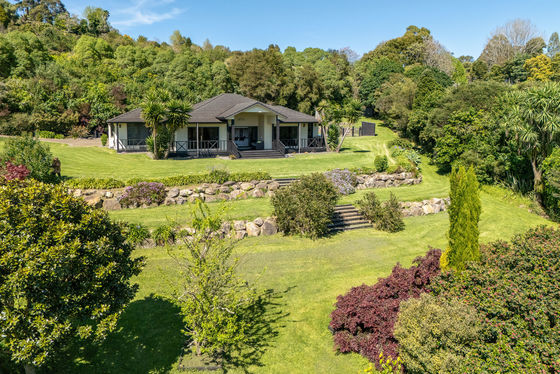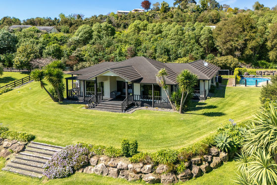 Tucked quietly down a tarsealed drive this substantial home enjoys a serene, semi-rural outlook with sweeping lawns, shrubs, some fruit trees, and a real sense of separation from life as we know it!