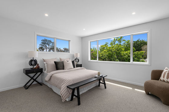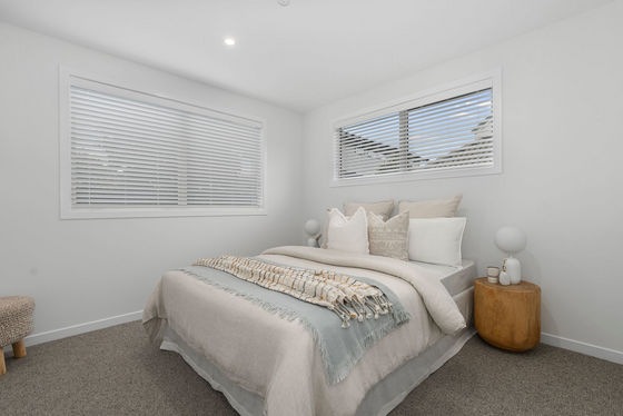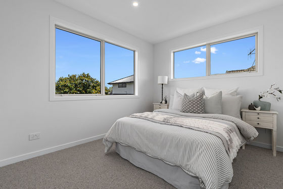 Generous open plan living spans the ground floor on the sunniest side, fronting just enough open and louvered deck for alfresco relaxation and entertaining with sliding doors off the kitchen and the lounge ends of the room, deep windows drawing loads of light. Small gardens bordering the deck enhance your environment and let you indulge your green fingers...just a little!