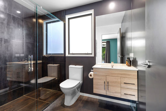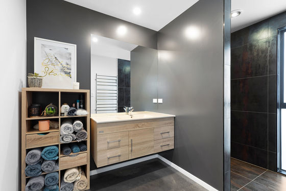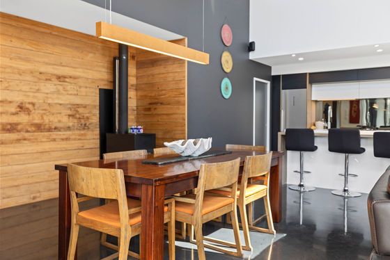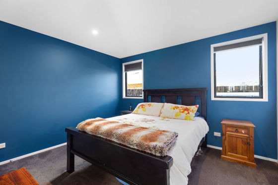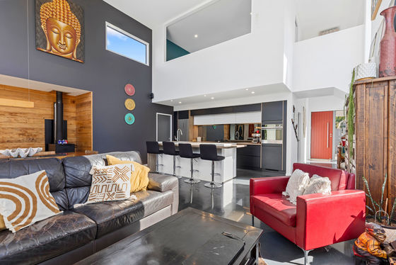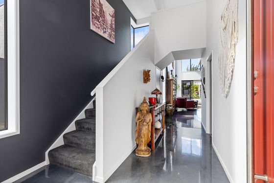 Built in 2019 by Jones Builders and clad in Hebel aerated concrete, the home carries a Master Builders Guarantee until 2029. Designed with sustainability in mind, it features solar panels, and dual hot water options via solar or wetback.