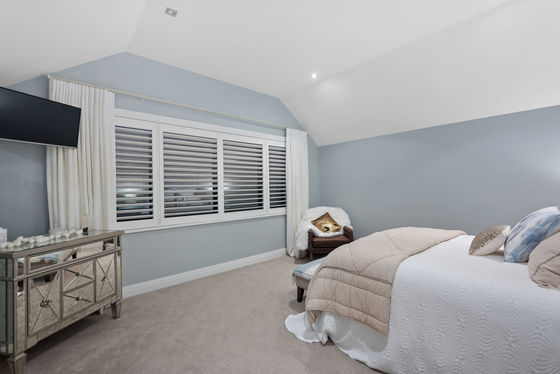 The home's layout is meticulously crafted to embrace natural light throughout the day, showcasing oversized windows that create a seamless transition between indoor and outdoor living. The luxurious master suite serves as a private retreat, complete with a spa-like ensuite bathroom and an expansive walk-in dressing room that offers ample storage and elegance. For added convenience, a separate guest wing is thoughtfully included, providing visitors with their own comfortable and private space.