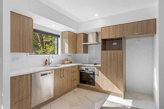 Downstairs, the modern kitchen (Bosch appliances) fronts the open plan living and dining zone and leads through sliders to the private gated courtyard bordering the reserve.