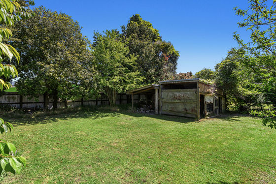 This tidy two-bedroom home offers more than meets the eye, with a sunny conservatory, large flat section, excellent garaging, extra sheds, and even a dog shelter.