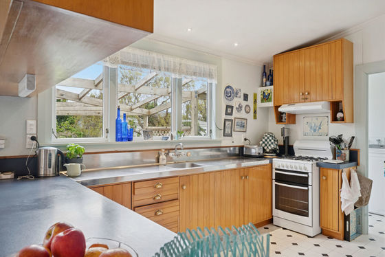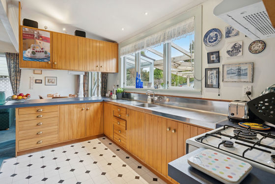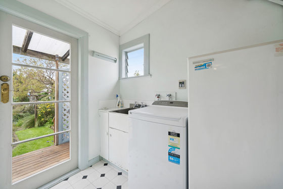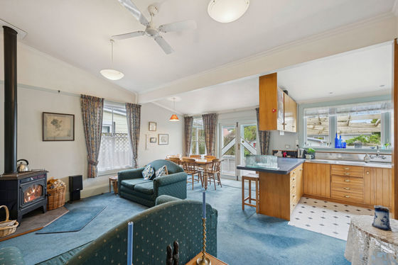 Rich Matai timber flooring and ornate timber doors complement a custom made timber kitchen, while the open plan layout flows effortlessly to a sun soaked deck.