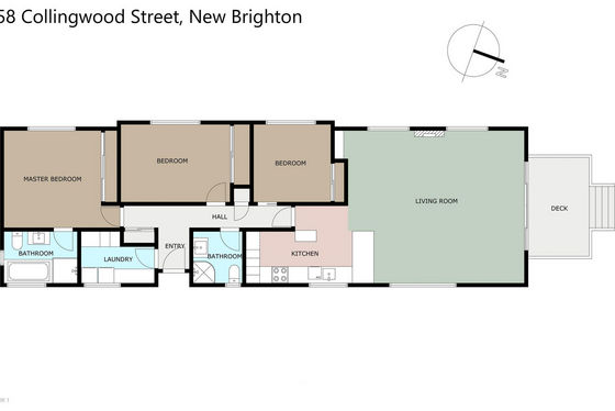 Inside, a spacious open-plan living and dining area extends seamlessly to a sun-drenched timber deck and backyard, offering a perfect setting for weekend barbecues, family gatherings, or simply unwinding in the sun. Comfort has been considered throughout, with double glazing, a heat pump, plus a gas fire ensuring warmth and efficiency through every season. The home offers three bedrooms, including a master with ensuite.