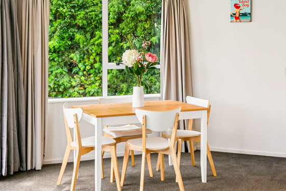 - Open-plan kitchen and living/dining area with French doors to a sunny deck for effortless alfresco bliss
