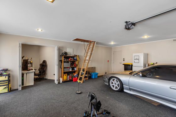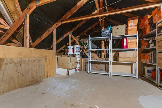 The oversized garage is a rare find, ideal for those needing room for vehicles, hobbies, or storage. It even includes an office nook, cleverly positioned to keep work life separate from home life, and a large attic area ensuring storage is well catered for.