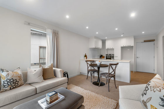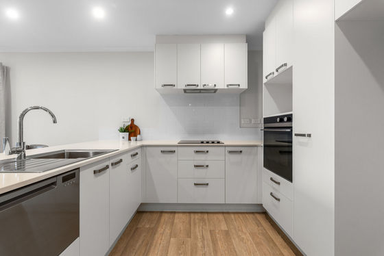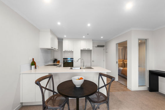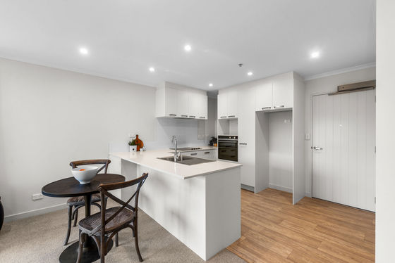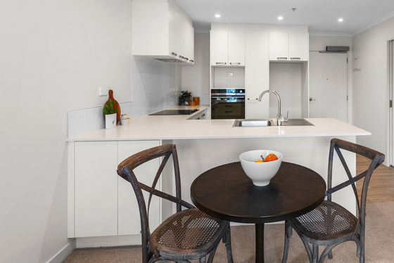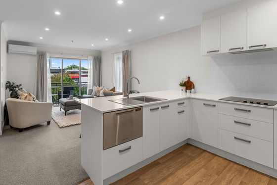Open plan living with a modern kitchen offering ample bench space and storage.