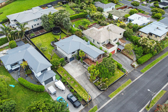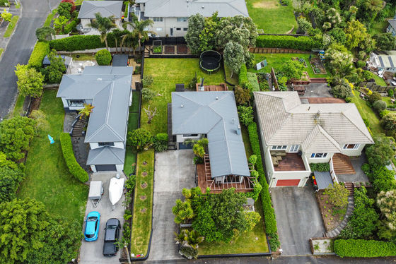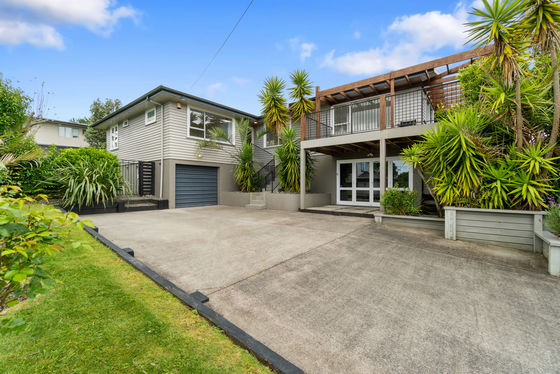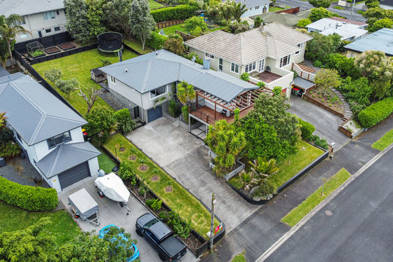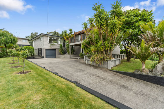 Outside, the property shines. Sitting proudly on an elevated and fully fenced 807m² section, there's ample space for kids and pets to play safely, surrounded by mature trees and established gardens. Raised veggie beds and a sun-drenched north-facing deck make outdoor living a daily pleasure, while the elevated position gives you peaceful views stretching across to Pirongia, Te Aroha, and the city skyline.