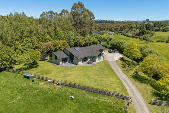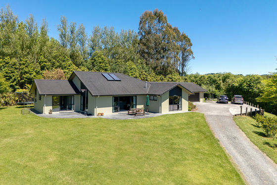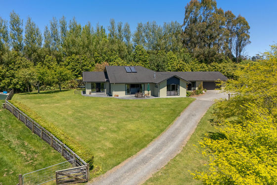 Down a beautiful tree-lined drive, this 7,940 sqm (approx. two-acres) lifestyle property offers the perfect balance of comfort, space and rural charm. Built in 2010 by Golden Homes, the build is aerated concrete over steel framing, providing good efficiency and warmth. This modern family residence captures wide north-facing rural views and all-day sun from its private setting.