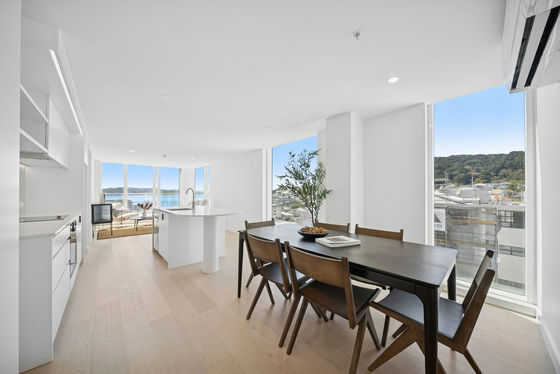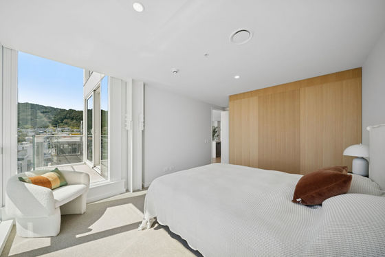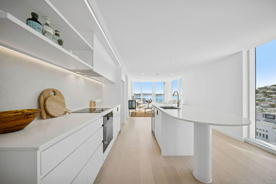 This recently completed penthouse at Hyde Lane has some of the best harbour views in the city! 1102 is positioned on the 11th floor of this high-rise, this design-led penthouse offers sweeping views across Wellington Harbour, Mt Victoria, and the CBD skyline. The open-plan living spaces offer floor-to-ceiling glazing, with natural light flooding into each space, accentuating refined architectural details and premium finishes. This penthouse showcases a light, contemporary palette complemented by natural textures and high-end fittings throughout.