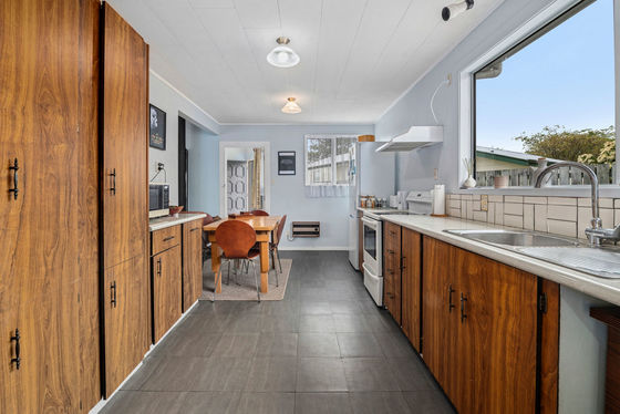 At one end of this family home is the fourth bedroom with lounge, dining, kitchenette, bathroom. A ranchslider onto deck area and own seperate entrance offers independant living.