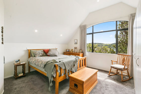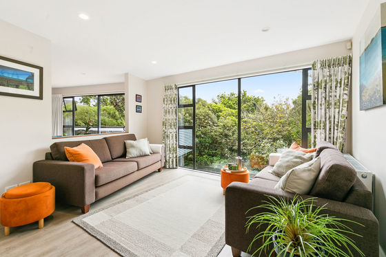 Outside, relax on the sun-drenched, sheltered deck, perfectly positioned to catch the sun and shield you from the southerly. With no lawns to mow or gardens to maintain, your weekends are yours to enjoy. And with kākā and tūī as regular visitors, your backyard becomes a private nature retreat.