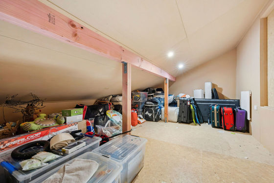 Generously sized, lined attic storage with in-built ladder