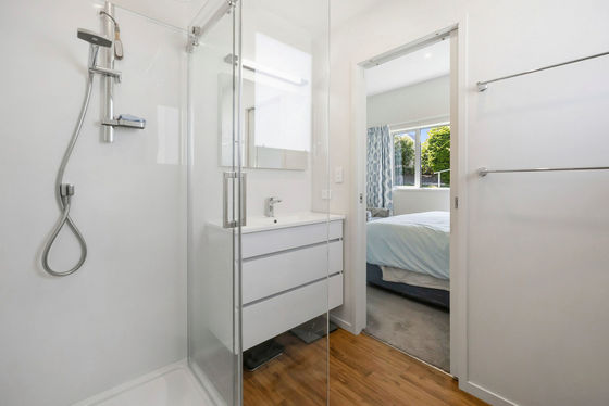 Sleek is an excellent description of the well appointed kitchen, with engineered stone bench top, induction cooktop, under bench oven, silent range hood, a walk-in pantry and alfresco window among the numerous stand out features.