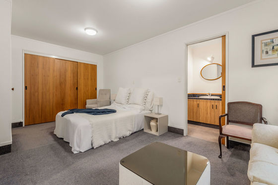 Upstairs, a lift provides easy access to the main living area where open-plan living, dining, and kitchen flow seamlessly onto a generous balcony - the perfect spot to relax or entertain while soaking in the Harbour and Mount views. The contemporary kitchen features quality appliances and a scullery with a sink and dishwasher, ensuring both style and functionality.