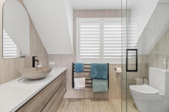 Upstairs, four bedrooms are privately positioned around an open gallery hall. The main suite enjoys a walk-in robe, ensuite, and balcony; the others share a pristine family bathroom and a separate spa room, a quiet indulgence at day's end.