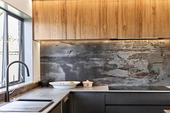 - Modern designer kitchen with a butlers pantry that neatly incorporates laundry facilities and opens outdoors