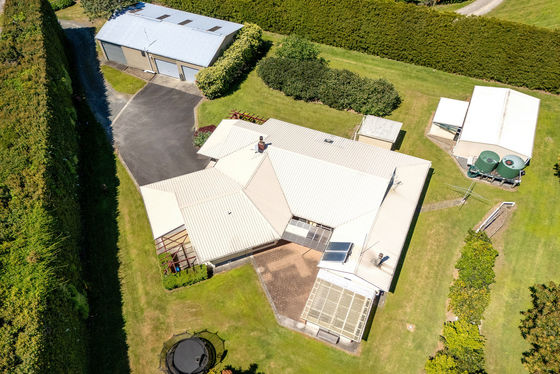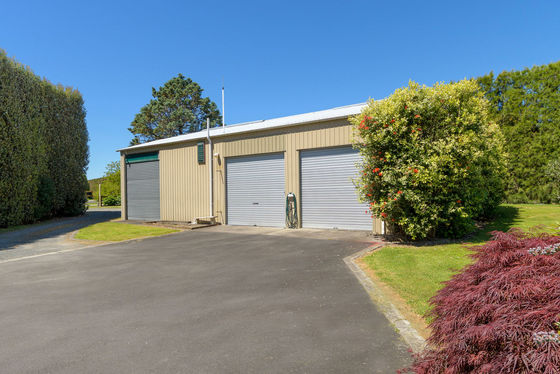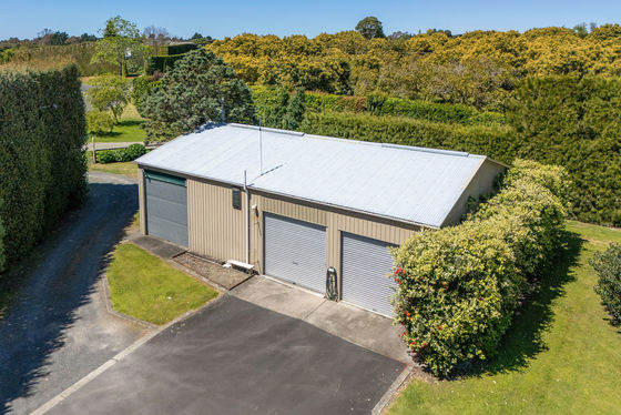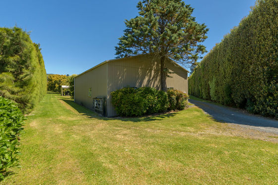 Outbuildings include a 14m x 9m (more or less) high-stud triple-bay shed plus a three-bay implement shed for the orchard machinery and further minor sheds.