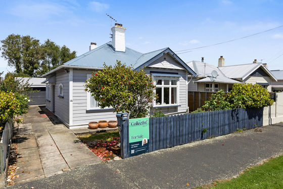 Step inside this charming home and you'll be immediately drawn in by its original features and timeless appeal. The inviting hallway sets a stylish tone, tastefully decorated and a lovely stain glass window. Leading you to the main lounge, heated by a heat pump, also centres around a gorgeous fire surround. Plenty of space to entertain or enjoy a quiet moment. Anchored by a gorgeous coal range the separate dining/living area provides the important space for family dining, also conveniently heated by a second heat pump. This area flows seamlessly into a trendy galley-style kitchen, where a glass door opens to a private, easy-care garden. The generous two bedrooms boast excellent built-in wardrobes and beautiful decorative feature fireplaces. Convenience is assured with a sparkling new bathroom and a second separate toilet. This is a warm, comfortable home you can move into and enjoy straight away, but it also offers a flexible layout: configure it as two bedrooms/two living areas or three bedrooms/one living area. Practical features include a single garage, perfect for storage. Close to great schools and within easy walking distance to the beach, this property offers the perfect blend of classic charm, modern convenience, and potential. For sale by Deadline Closing 26th November 2025 at noon, prior offers will be considered.