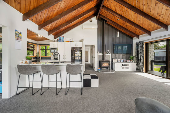 The home offers instant appeal with airy spacious open plan living with sarked ceiling, a modern kitchen with quality appliances and three bedrooms including a master suite with walk-in wardrobe and ensuite, along with a fire on wetback , heat pump and double glazed for year round comfort.