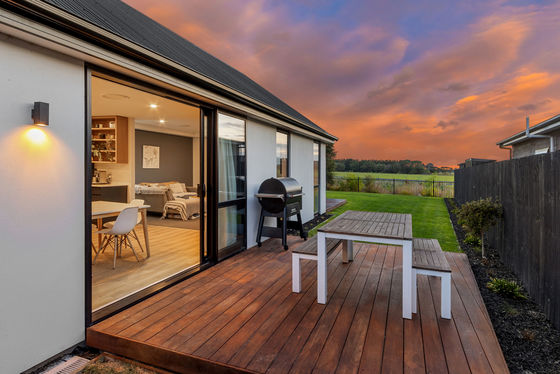 Modern, manicured and flawlessly finished, this family home claims one of Te Whāriki's most privileged positions, backing onto the waterway with open views across farmland and a distant line to the Port Hills.