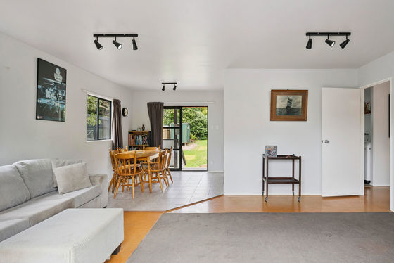 3 spacious bedrooms, 1 well-appointed bathroom and a separate toilet. The open-plan dining and lounge area creates a warm and inviting atmosphere, perfect for entertaining or family gatherings. The kitchen features standard amenities, including an electric stove and rangehood, making meal preparation a breeze