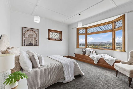 - Superbly presented '30s showcase, complete with bay window seats in the lounge and master bedroom, decorative ceilings, stained leadlights, original doors, matai floorboards and even a tiled (non-working) fireplace